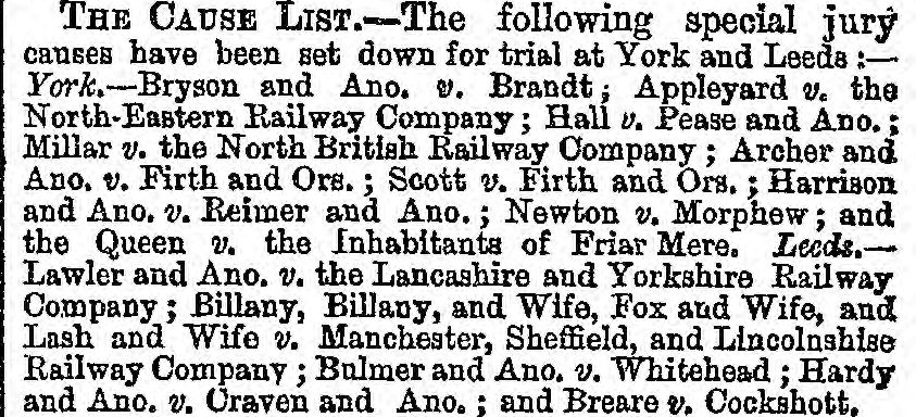 Billany, Billany and wife - Cause List
