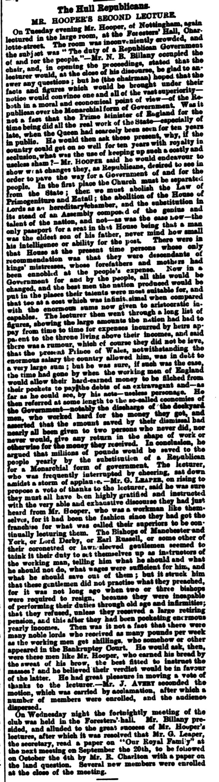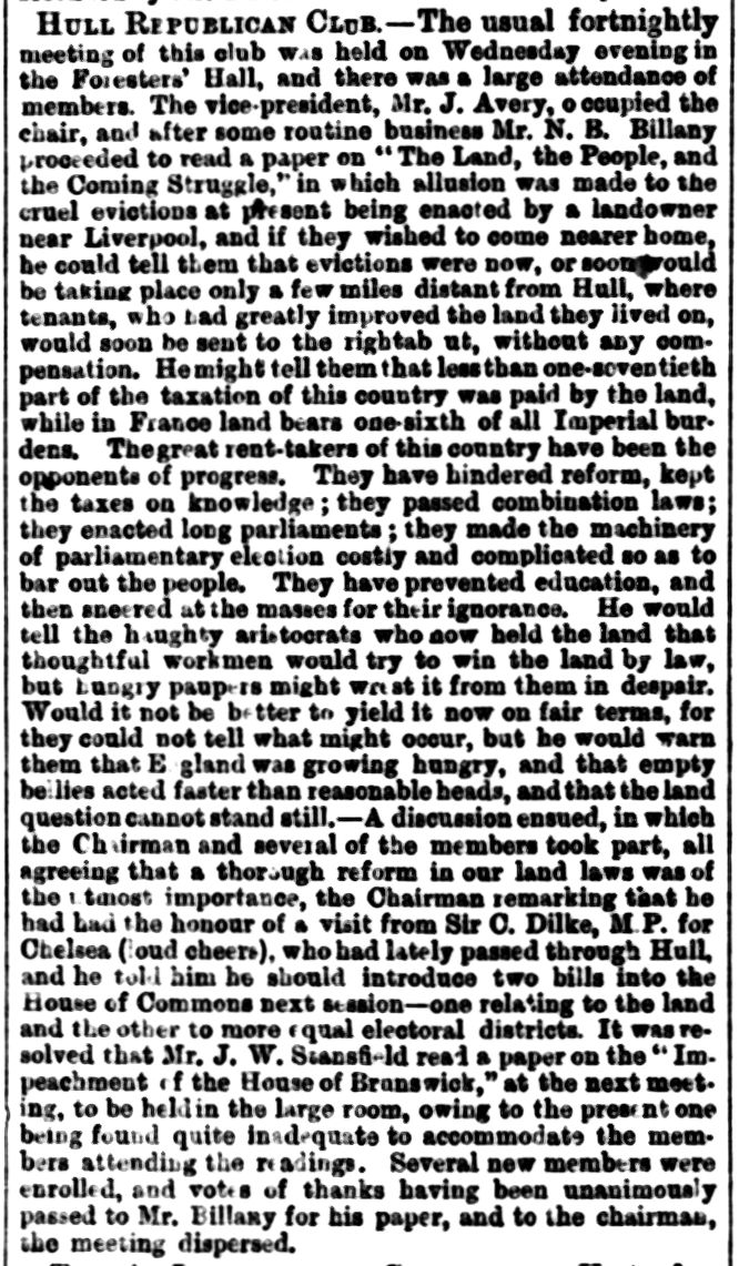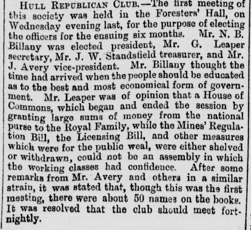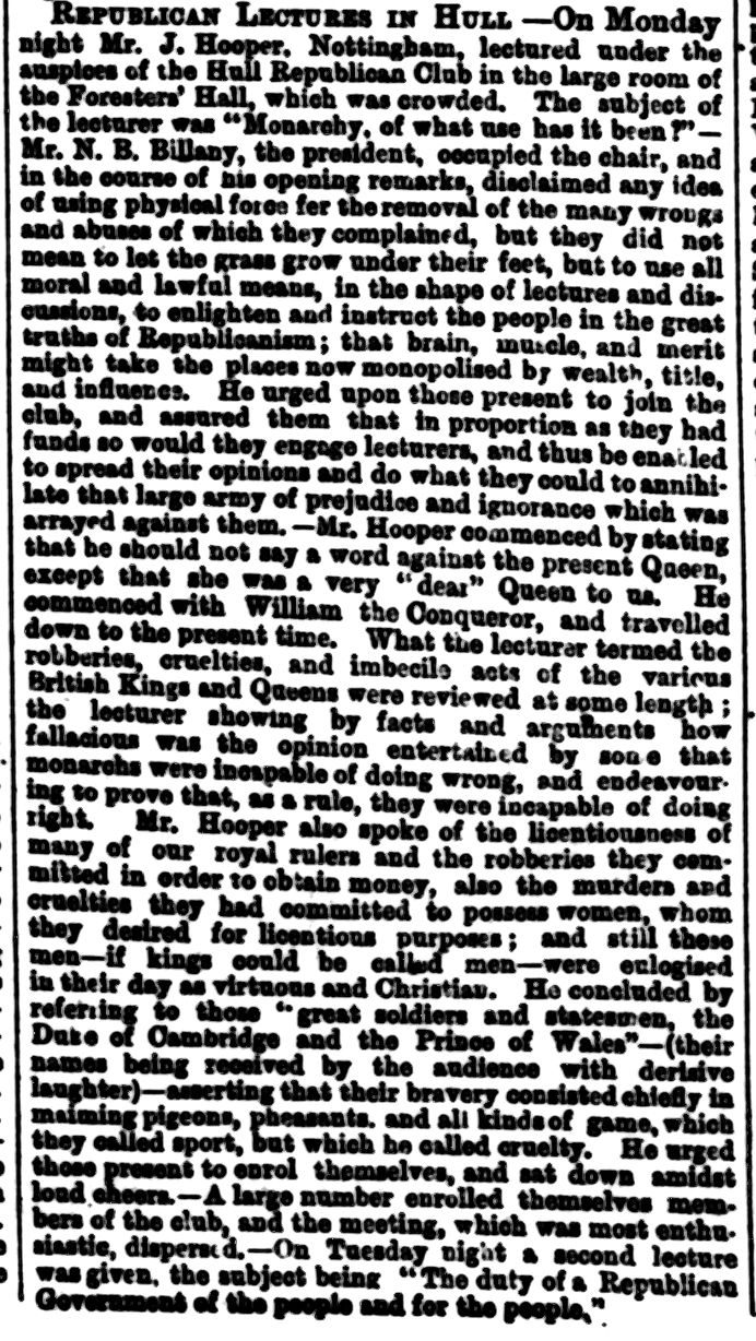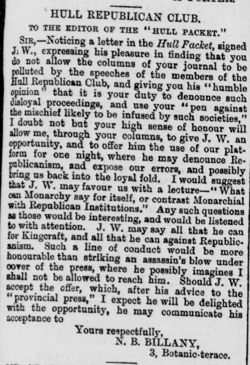 Hull Republican Club, Letter to the Editor