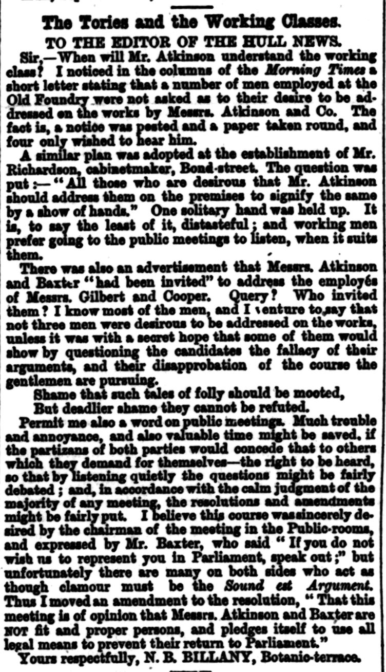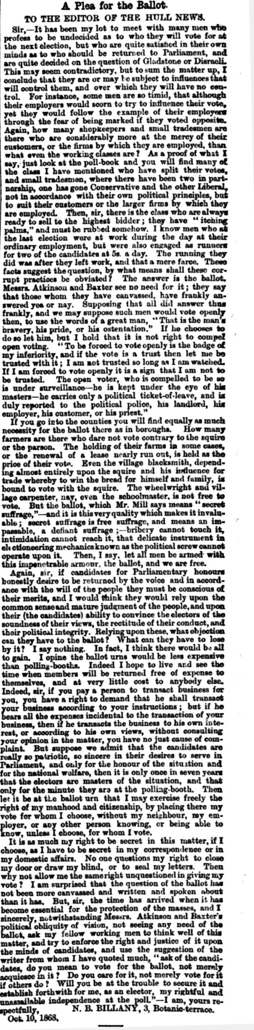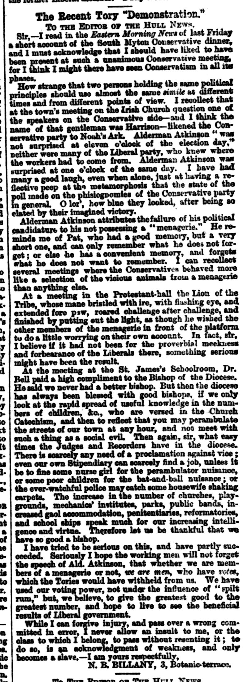 Hull Republican Club, Letter to the Editor
