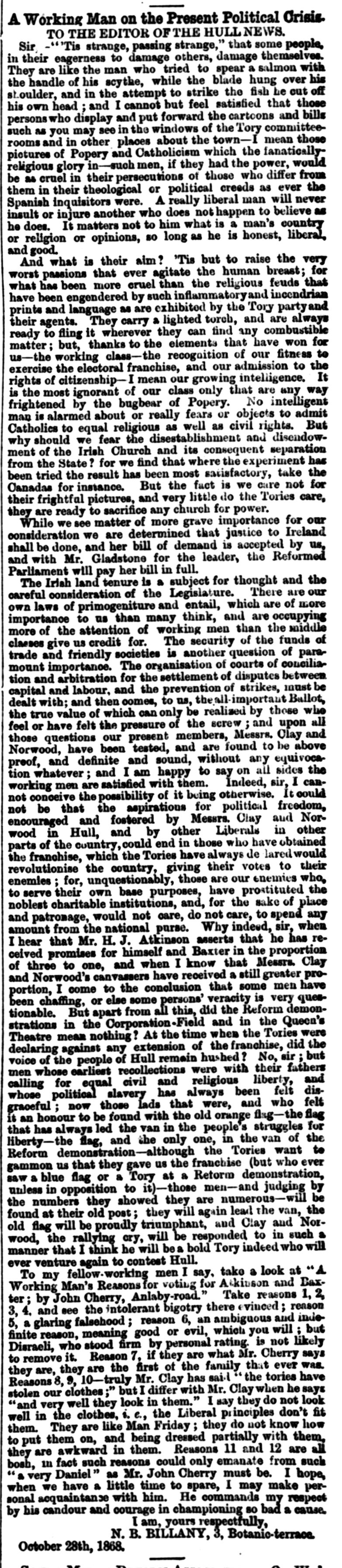Hull Daily News 31 October 1868 Page 3