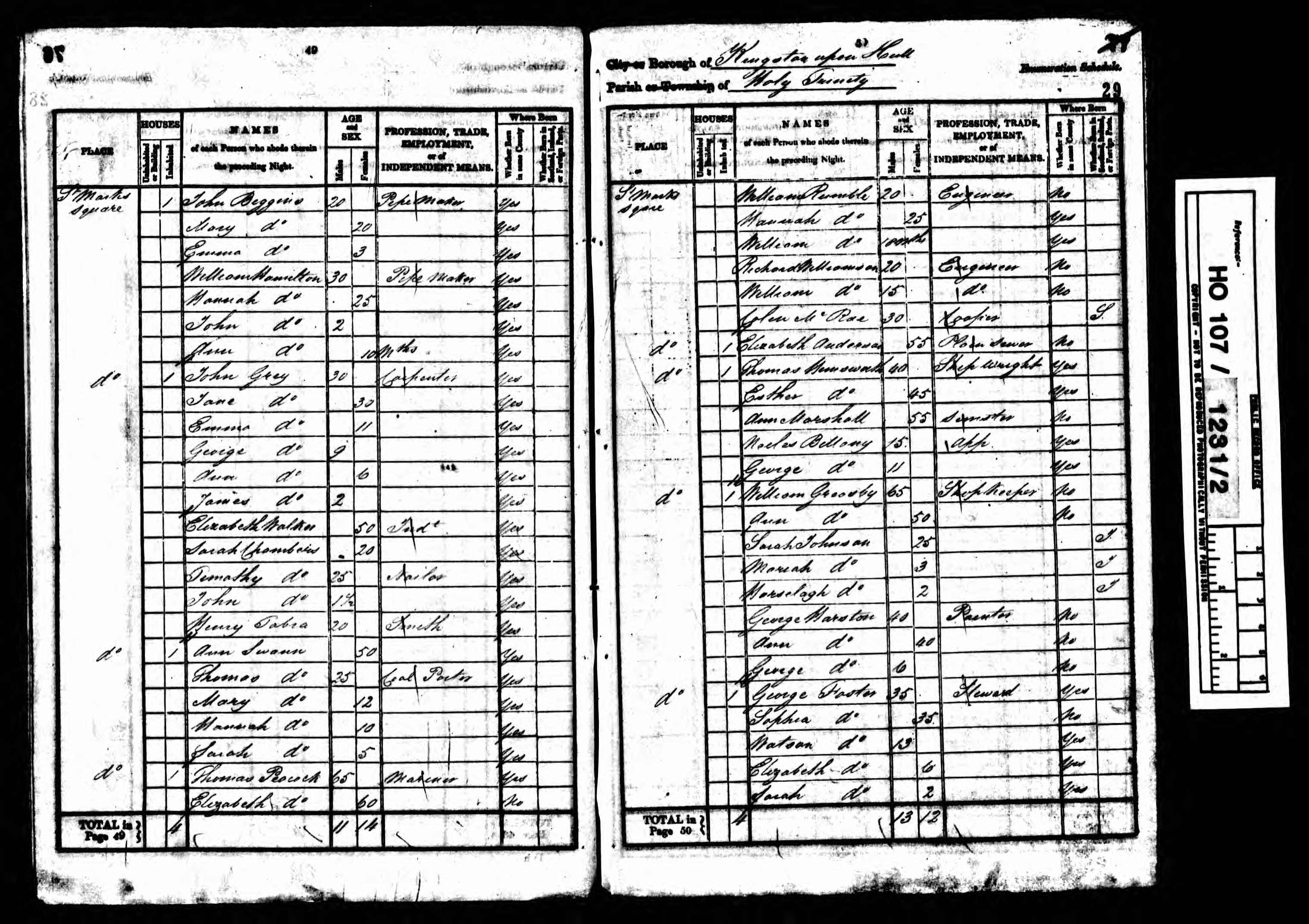 Neiles & Family 1841 Census Hull, Yorkshire, England