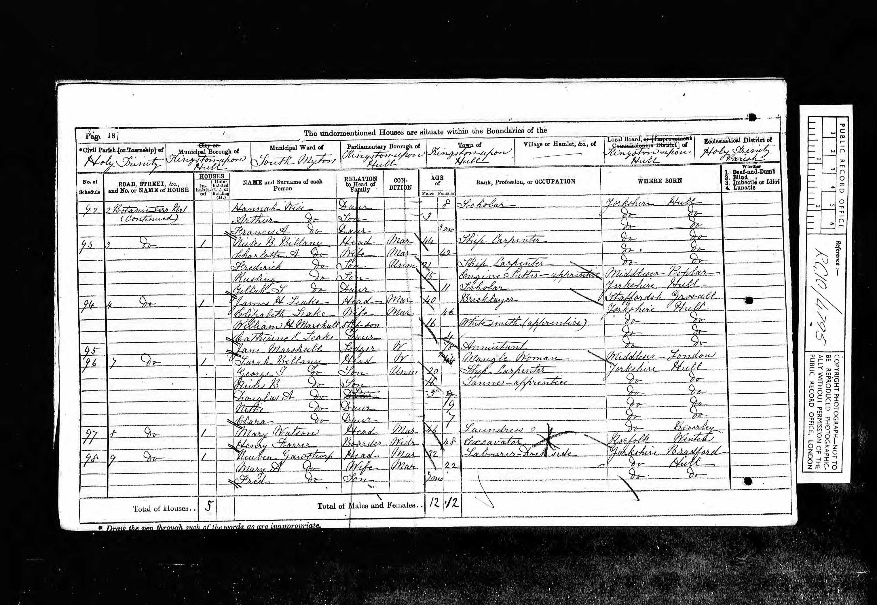 Neiles & Family 1871 Census Hull, Yorkshire, England